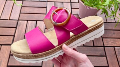 Remonte bring this style (catchily named D0-Q51) back each year. The statement buckle looks great but cleverly it's just for decoration on a fully adjustable velcro strap so there's no faff. However the front strap is fixed & the footbed wasn't wide enough for me alas. They would suit standard width and maybe even narrow feet too. As well as neutral shades, new for this season are a gorgeous green and this deep pink.