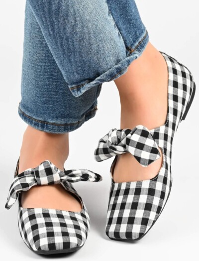 How cute are these Seralinn gingham flats? They also come in pastel gingham shades, perfect for Spring/Summer, and beige and black neutrals. A big bow brightens up any outfit, plus it's a great way to break up a long foot.
